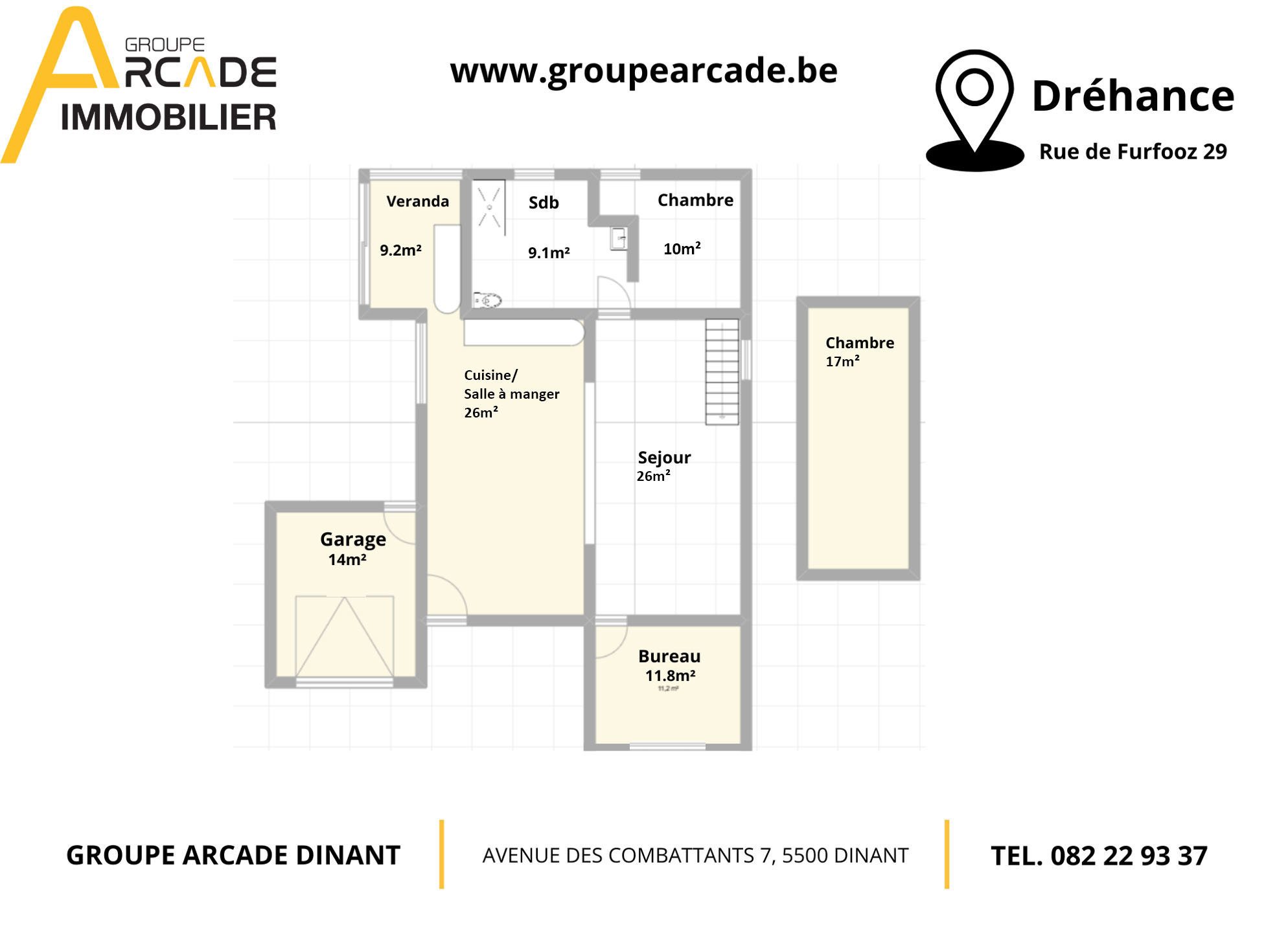 Groupe Arcade propose de faire offre à partir de 350.000€ pour cette maison de plain-pied située dans la paisible campagne du village de Dréhance. Disposant d'un vaste terrain arboré, la parcelle jouxte les prairies et les bois, de quoi s'assurer un coin de paradis. Endroit très prisé. Composition: entrée avec salle à manger cuisine équipée ouverte, veranda, séjour, bureau, 1x chambre, salle de douche. A l'étage 1x chambre. Garage, parking, terrasse en béton lissé, magnifique jardin arboré avec abris de jardin. Eléments techniques: Toiture en ardoises artificielles isolée. Châssis en Bois dv et pvc de 2014 et 2022. Chauffage central et production d'eau chaude sur chaudière au gaz + poêle à bois. Electricité bi-horaire. système d'égouttage par puits perdu. (offre sous réserve d'acceptation par le propriétaire) Rc net 594€. PEB D 322kwh/m² an. E. tot. 41 232kwh/an n° 20250522025432