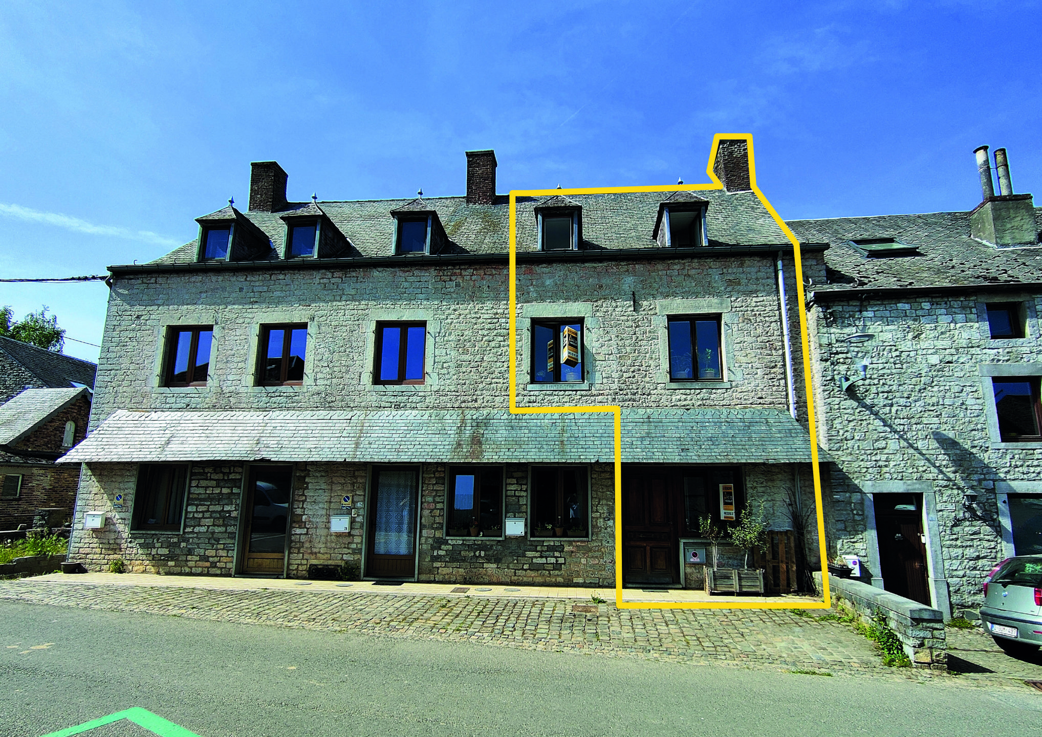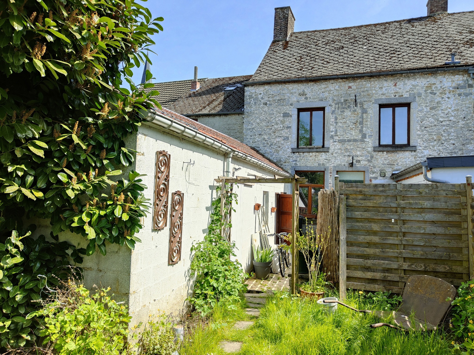 Groupe Arcade Dinant nodigt u uit om een bod te doen vanaf € 198.000 op deze natuurstenen woning met garage en tuin gelegen in het dorpje Falaën (1x van de mooiste dorpjes in Wallonië). Het huis wordt momenteel verhuurd aan €650/maand, niet geïndexeerd maar gratis. Mogelijke huuropbrengst na wat kleine opknapbeurten +/- 850€. Het is als volgt samengesteld: Begane grond: hal met werkplaats, gevolgd door een was-/stookruimte. 1e verdieping: een grote, lichte woonkamer, badkamer en een kamer gewijd aan een keuken (te installeren, degene zichtbaar op de begane grond en een professionele keuken tijdelijk gebruikt door de huidige huurder), momenteel wordt deze kamer gebruikt als kantoor. Op de 2e verdieping: een nachthal, 2x slaapkamers, waarvan 1x met doucheruimte, en een zolder die verbouwd kan worden. Elke verdieping heeft een toilet. Doorgang naar de garage. Overig: leistenen dak met isolatie, houten en PVC ramen. Centrale verwarming op recente oliegestookte ketel, elektrische warmwaterproductie. Goedgekeurde elektriciteit. PEB C 231 kwh/m² an. E. tot. 39 426kwh/jaar n° 20250517007001